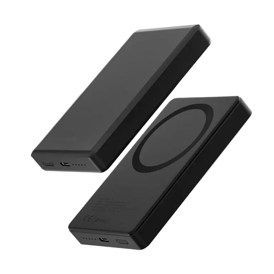 A magnetic-compatible aluminum power bank with a 10,000mAh capacity. Designed from lightweight aluminum, this compact power bank is conveniently slips into your pocket. It features a USB-C output for charging two devices simultaneously.
