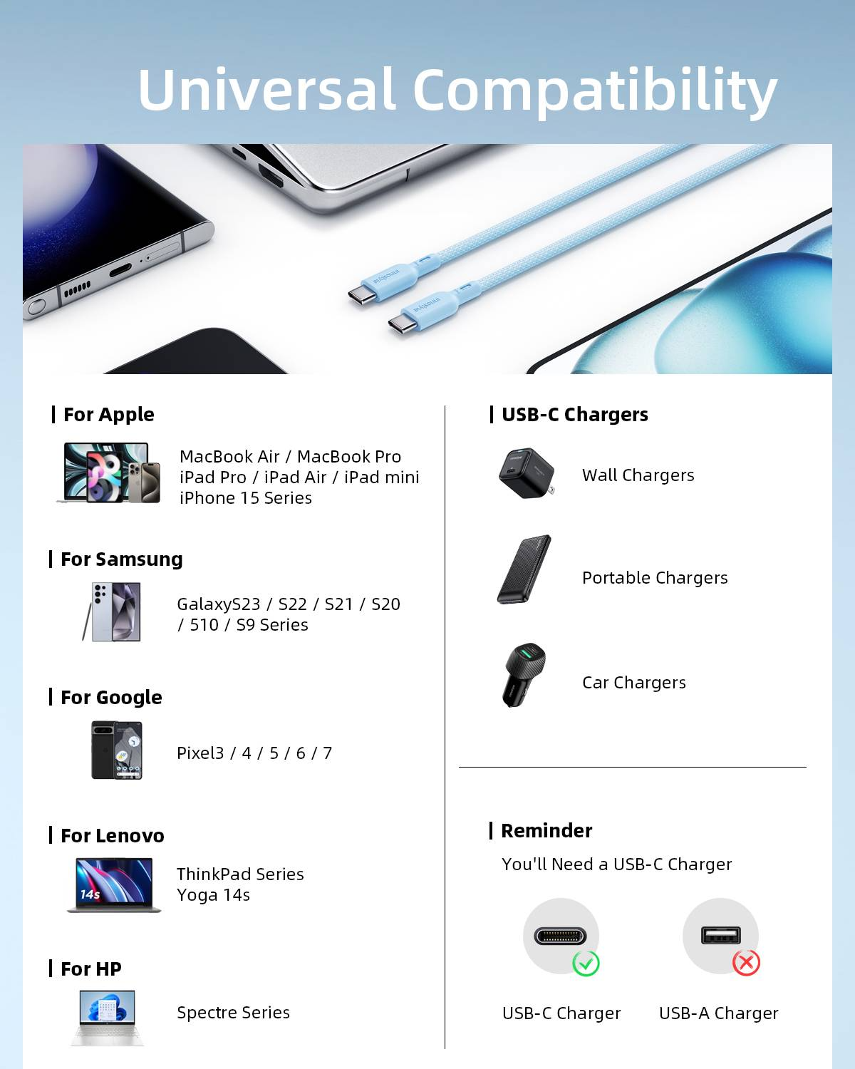 - Compatibility: All USB-C enabled laptops, tablets and phones, and future devices
