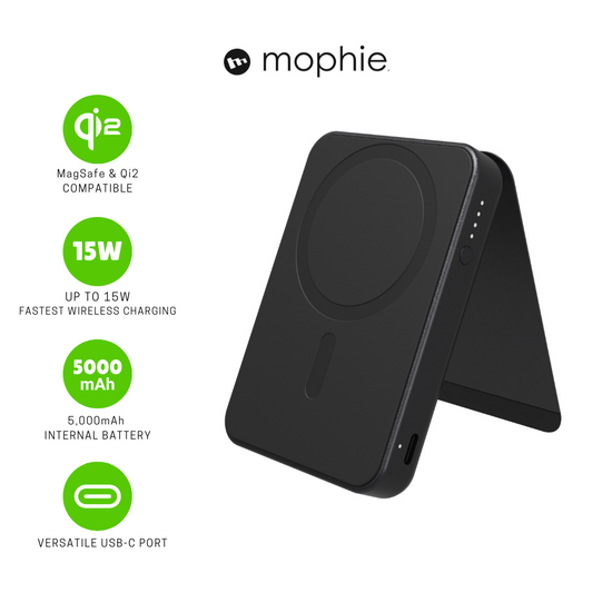MOPHIE Snap+ Powerstation Mini Stand 5000mAh – Qi2 Wireless Charging Power Bank – Black