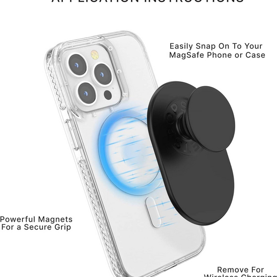 Easy on. Easy off. Easy charge. The Black PopGrip for MagSafe is built for Apple’s MagSafe technology. Our engineering team embraces Apple’s innovative technology to create a phone grip that is sleek, dependable, and full of class. This magnetic PopGrip contains Neodymium, the strongest magnet commercially available.
